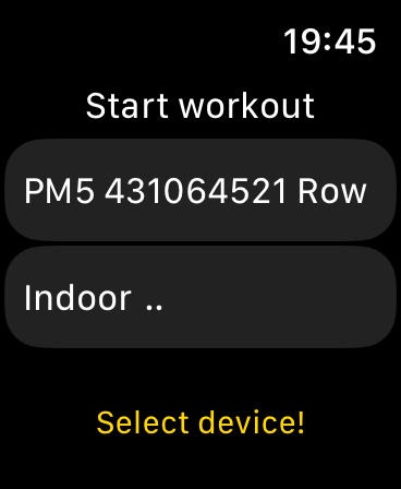 After connecting to a selected ‚device‘, the Apple Watch App waits for the workout to be started on the concept2 ‚device‘.