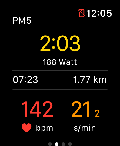 The connection to a concept2 ergometer uses Bluetooth for the data transmission between the Apple Watch and the rowing ‚device‘. Therefore Bluetooth on the Apple Watch has to be turned on and the concept2 needs a PM5.