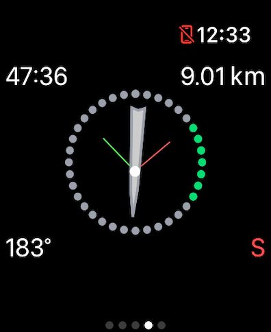 This page on the Apple Watch shows the current direction your boat is heading (degree and abbreviation).