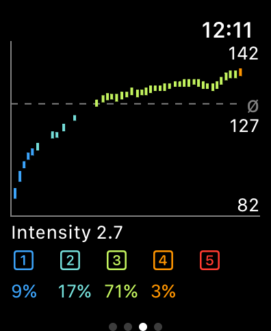 This page on the Apple Watch shows your heart rate samples of the current workout. The graph is updated periodically.